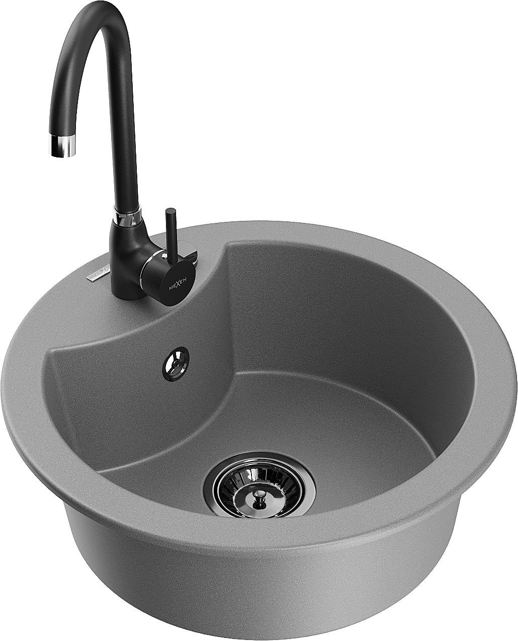 Mexen Diego žulový drez s 1 komorou a kuchynskou batériou Telma, sivý - 6512-71-670200-70-B