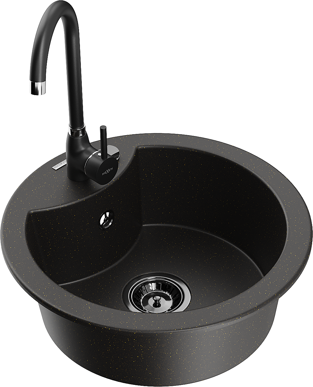Mexen Diego žulový drez s 1 komorou a kuchynskou batériou Telma, čierny/zlatý - 6512-75-670200-70-B