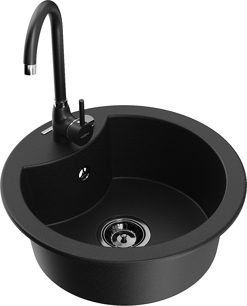 Mexen Diego granitový drez 1-komorový s kuchynskou batériou Telma, čierny - 6512-77-670200-70-B