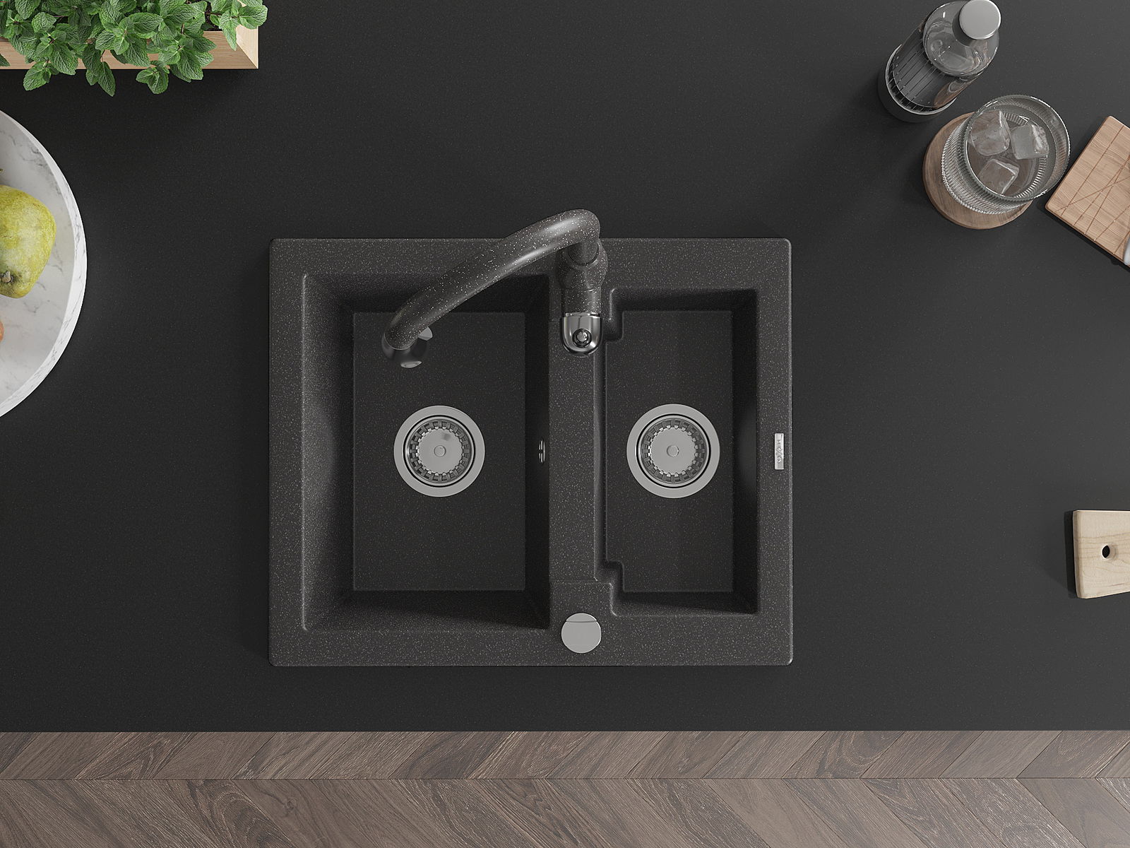 Povrch umývadla je odolný voči škvrnám a sfarbeniu, vďaka čomu sa ľahko čistí a zachováva si svoju farbu po dlhú dobu. Estetický a prakticky dopĺňajúci každú kuchyňu.