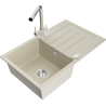 Povrch kuchynského drezu je odolný voči škvrnám a zafarbeniu, vďaka čomu sa ľahko udržiava a zachováva svoju farbu počas dlhého obdobia používania. Estetický a praktický doplnok pre každú kuchyňu.