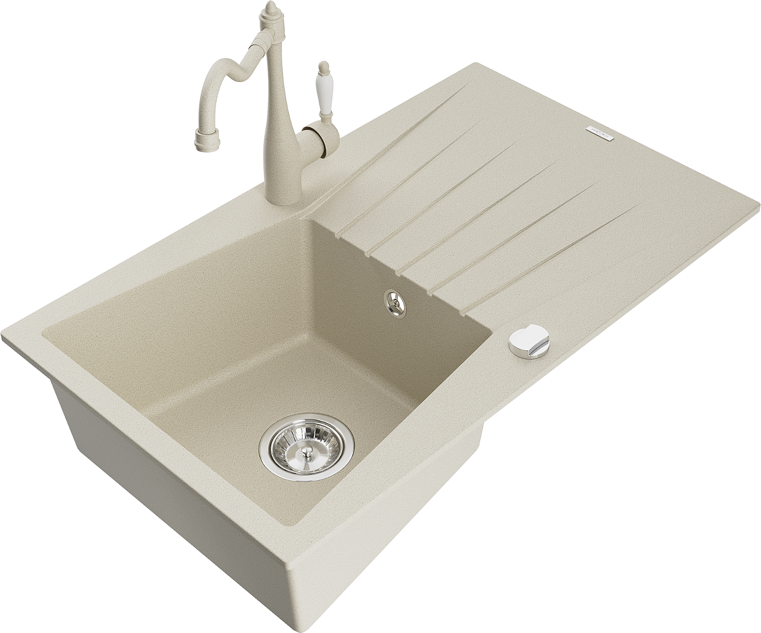 Mexen Cesar žulový drez s 1-komorou s odkvapkávačom a kuchynskou batériou Carla, béžový - 6514-69-670700-69