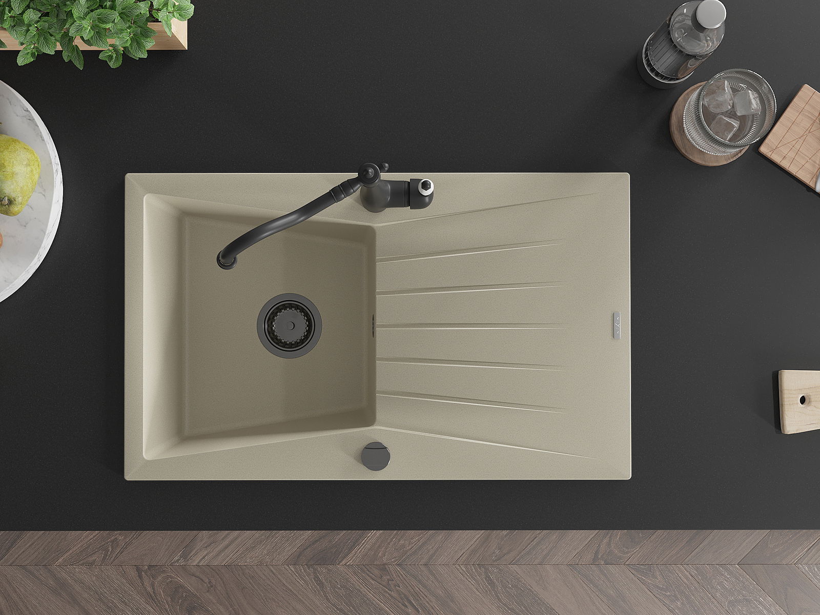 Mexen Cesar žulový kuchynský drez s 1 komorou s odkvapkávačom a kuchynskou batériou Carla, béžový - 6514-69-670700-70