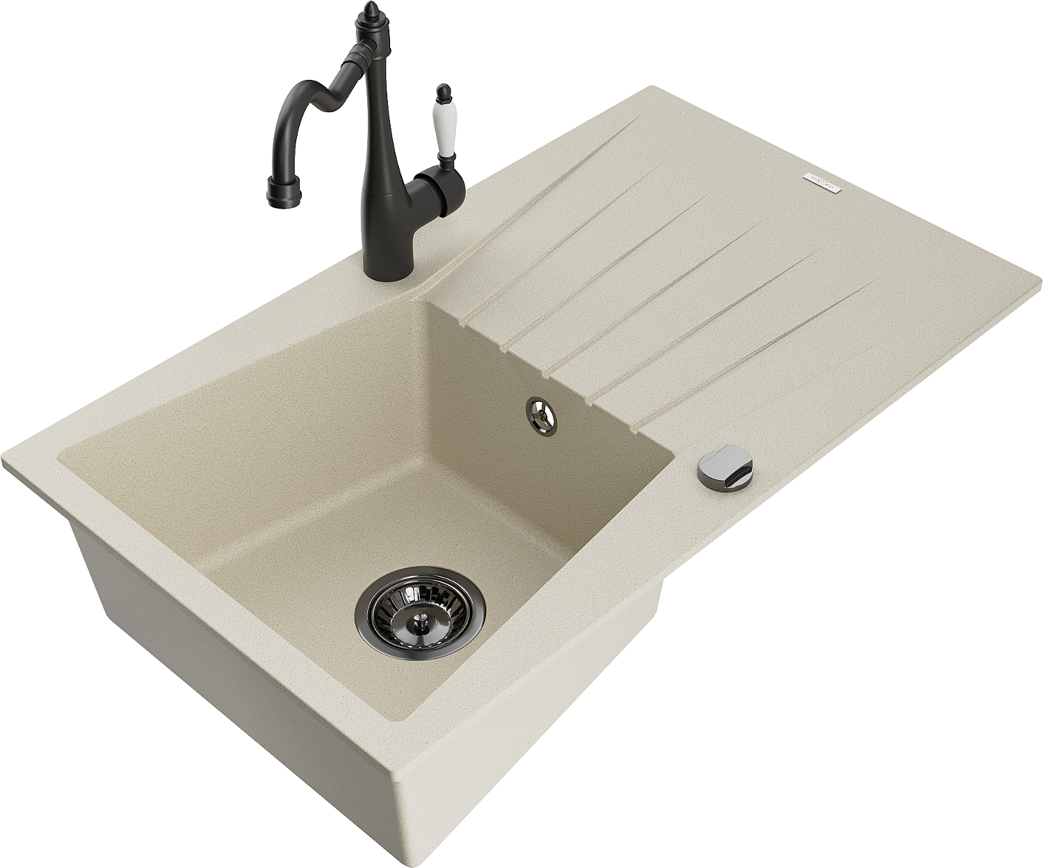 Povrch umývadla je odolný voči škvrnám a sfarbeniu, vďaka čomu sa ľahko čistí a zachováva si svoju farbu po dlhú dobu. Estetický a prakticky dopĺňajúci každú kuchyňu.