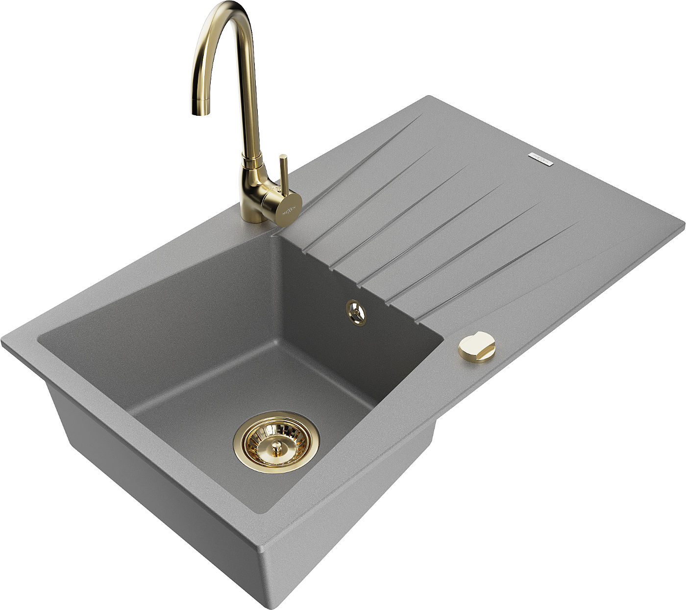 Mexen Cesar granitový drez s 1 komorou a odkvapkávačom a kuchynskou batériou Telma, šedý - 6514-71-670200-50