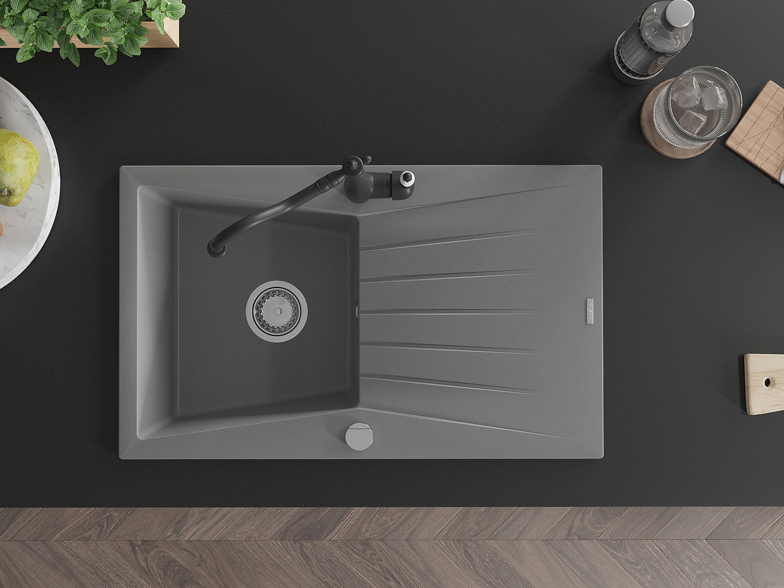 Povrch umývadla je odolný voči škvrnám a sfarbeniu, vďaka čomu sa ľahko čistí a zachováva si svoju farbu po dlhú dobu. Estetický a prakticky dopĺňajúci každú kuchyňu.