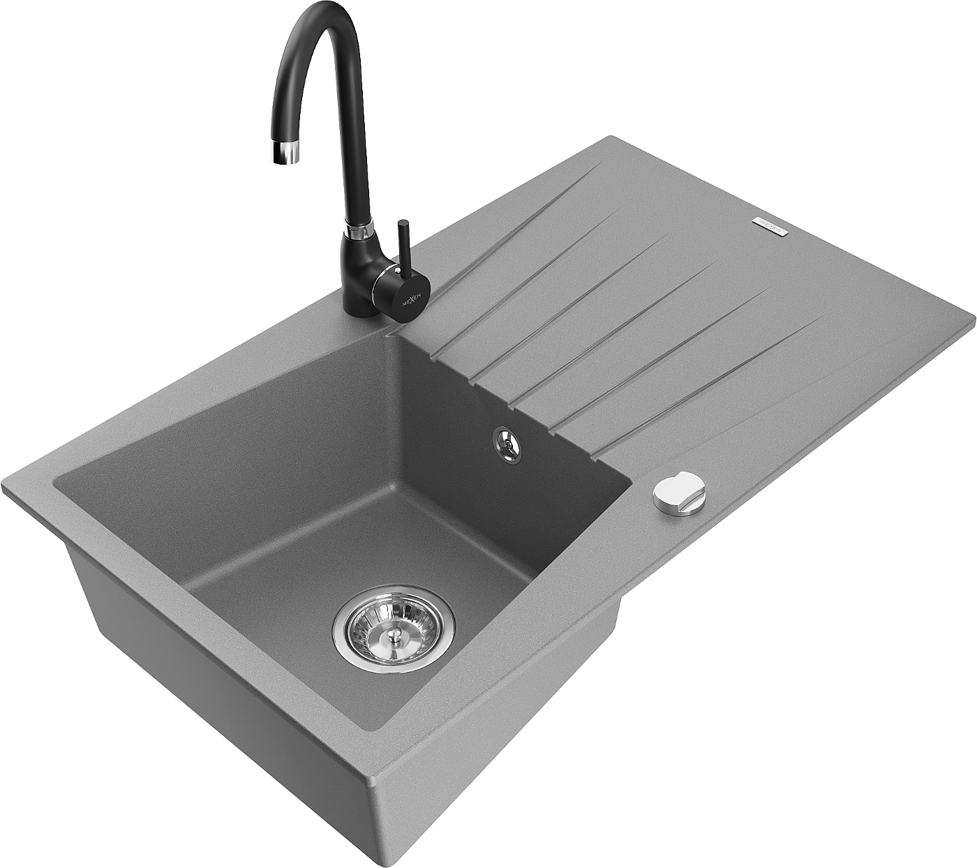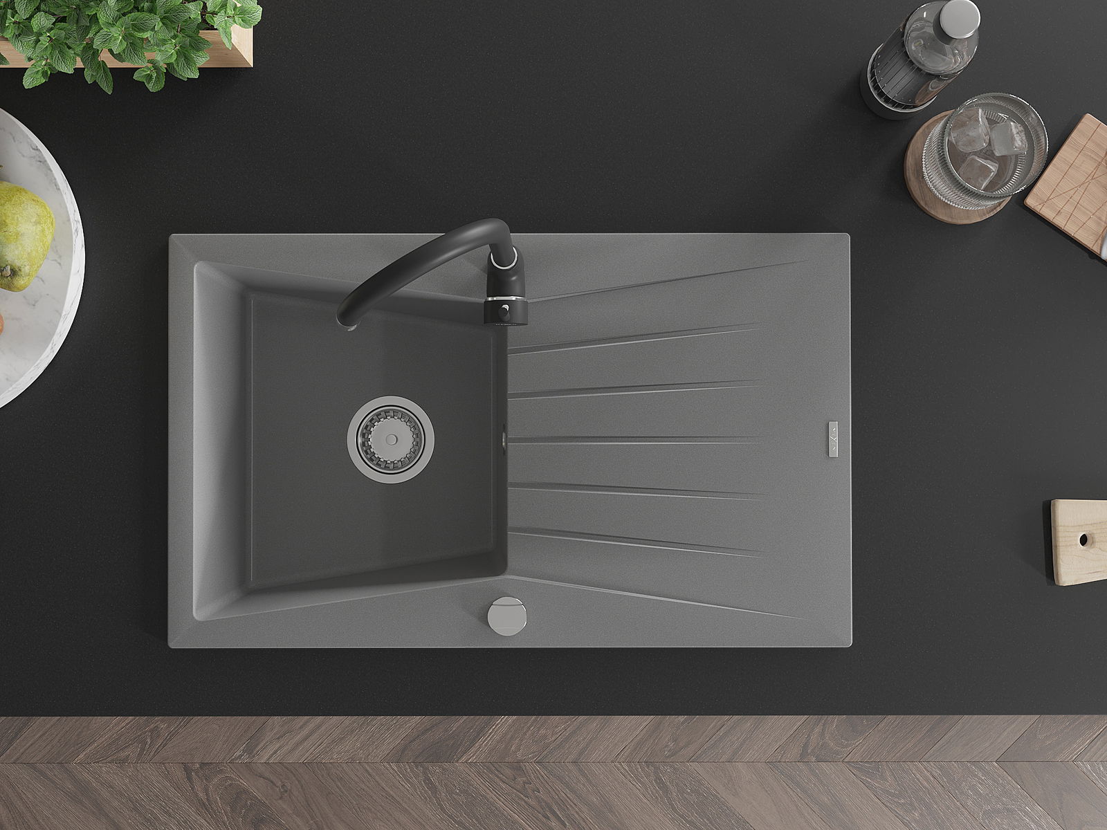 Mexen Cesar žulový drez s jednou komorou a odkvapkávačom a kuchynskou batériou Telma, šedý - 6514-71-670200-70
