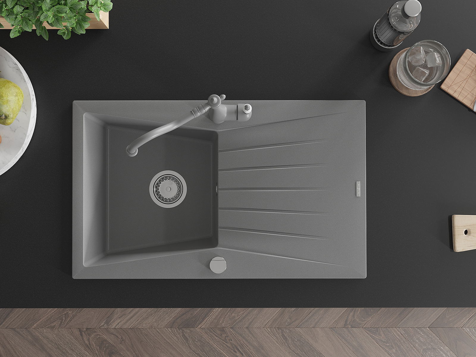Povrch umývadla je odolný voči škvrnám a sfarbeniu, vďaka čomu sa ľahko čistí a zachováva si svoju farbu po dlhú dobu. Estetický a prakticky dopĺňajúci každú kuchyňu.