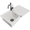 Povrch kuchynského drezu je odolný voči škvrnám a zafarbeniu, vďaka čomu sa ľahko udržiava a zachováva svoju farbu počas dlhého obdobia používania. Estetický a praktický doplnok pre každú kuchyňu.