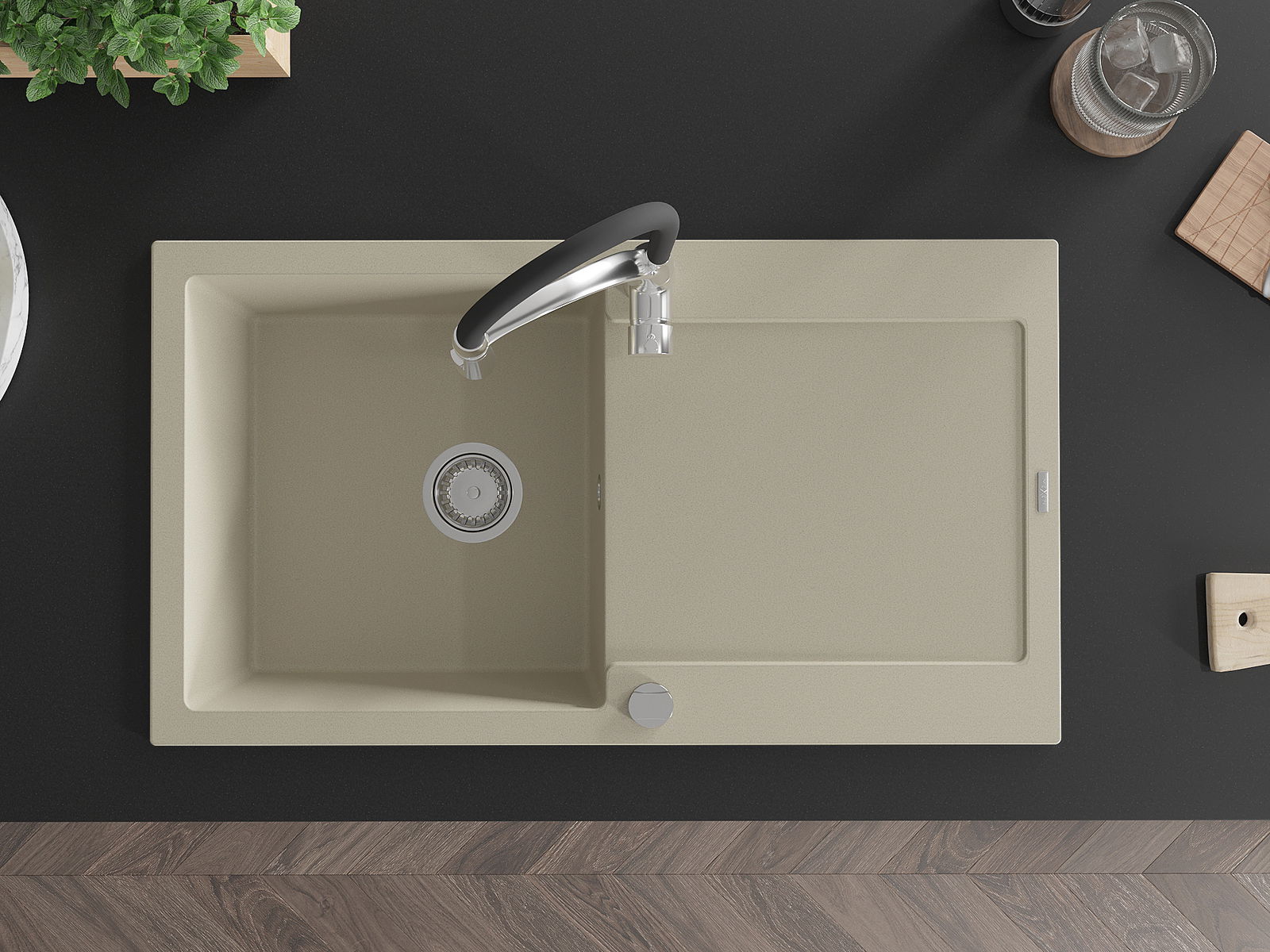 Povrch umývadla je odolný voči škvrnám a sfarbeniu, vďaka čomu sa ľahko čistí a zachováva si svoju farbu po dlhú dobu. Estetický a prakticky dopĺňajúci každú kuchyňu.