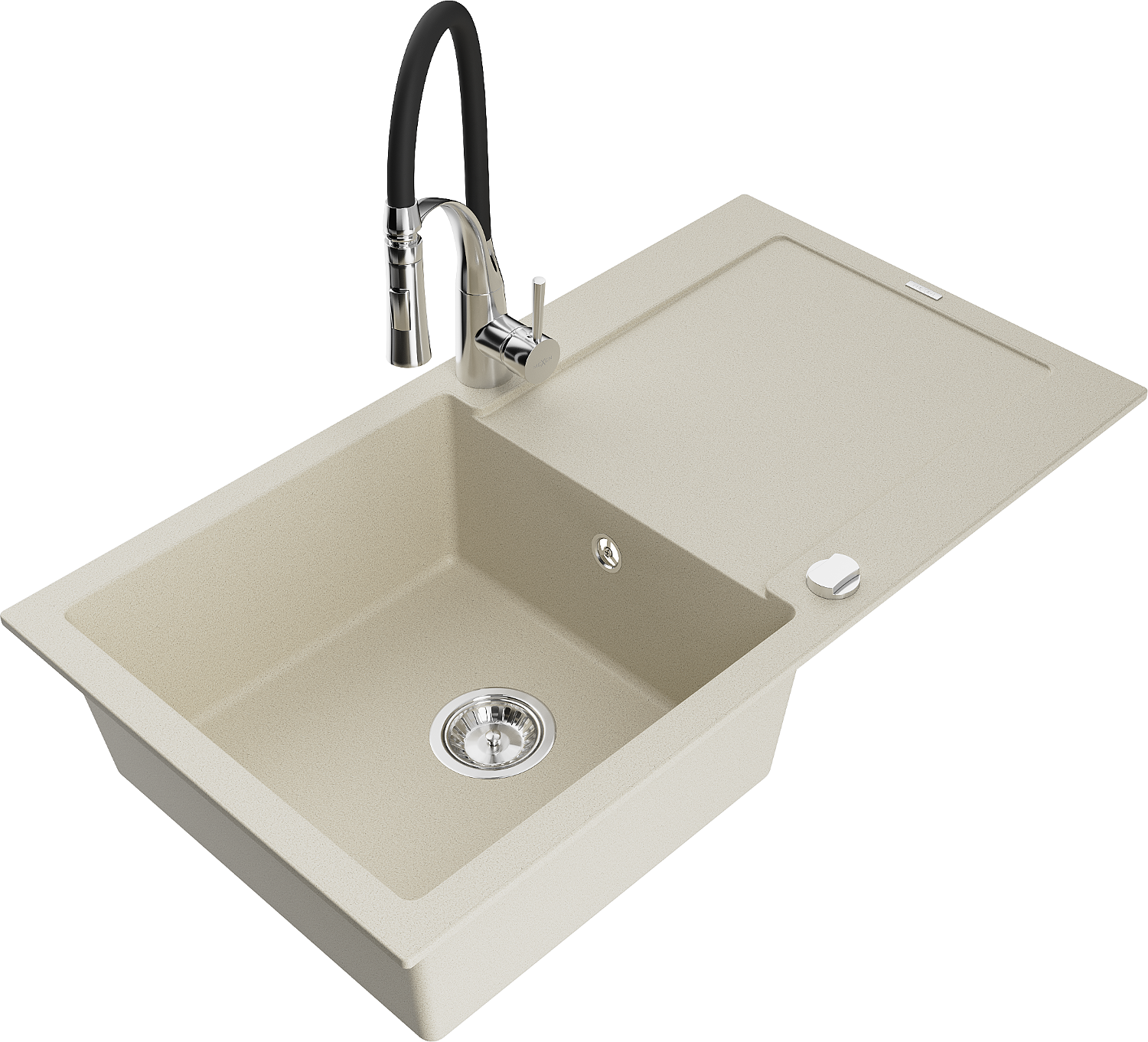 Mexen Leo granitový kuchynský drez 1-komorový s odkvapkávačom a kuchynská batéria Aster, béžová - 6501-69-73450-07