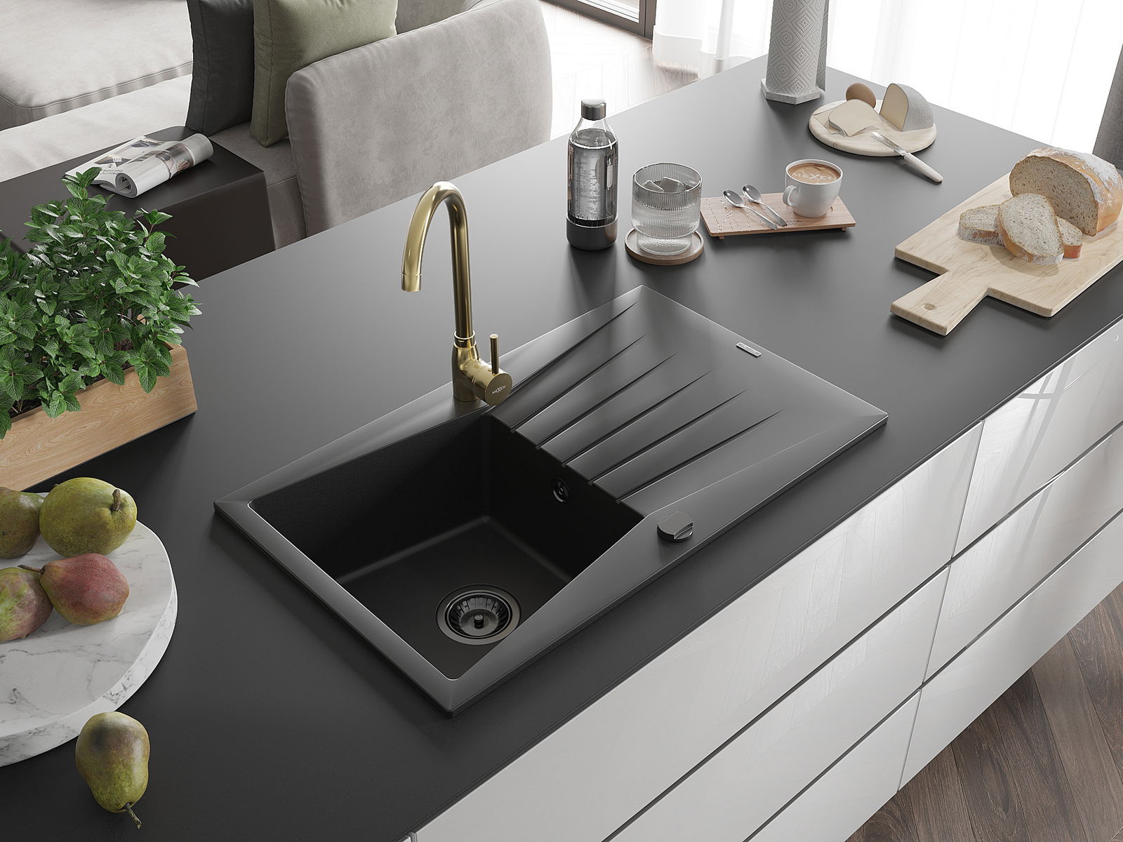 Drez bol vyrobený z vysoko kvalitného granitu. Predstavuje elegantné, ale predovšetkým praktické doplnenie každej kuchyne, nezávisle od jej štýlu. Vysoká kvalita a trvácnosť granitu zaisťujú dlhodobé používanie.