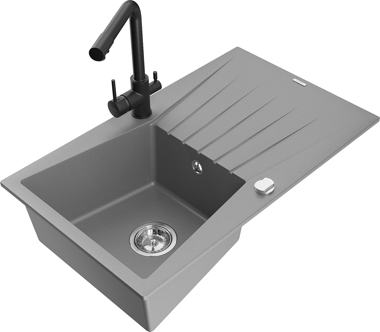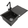 Mexen Cesar granitový drez 1-komorový s odkvapkávačom a kuchynskou batériou Duero, sivý - 6514-71-671600-70