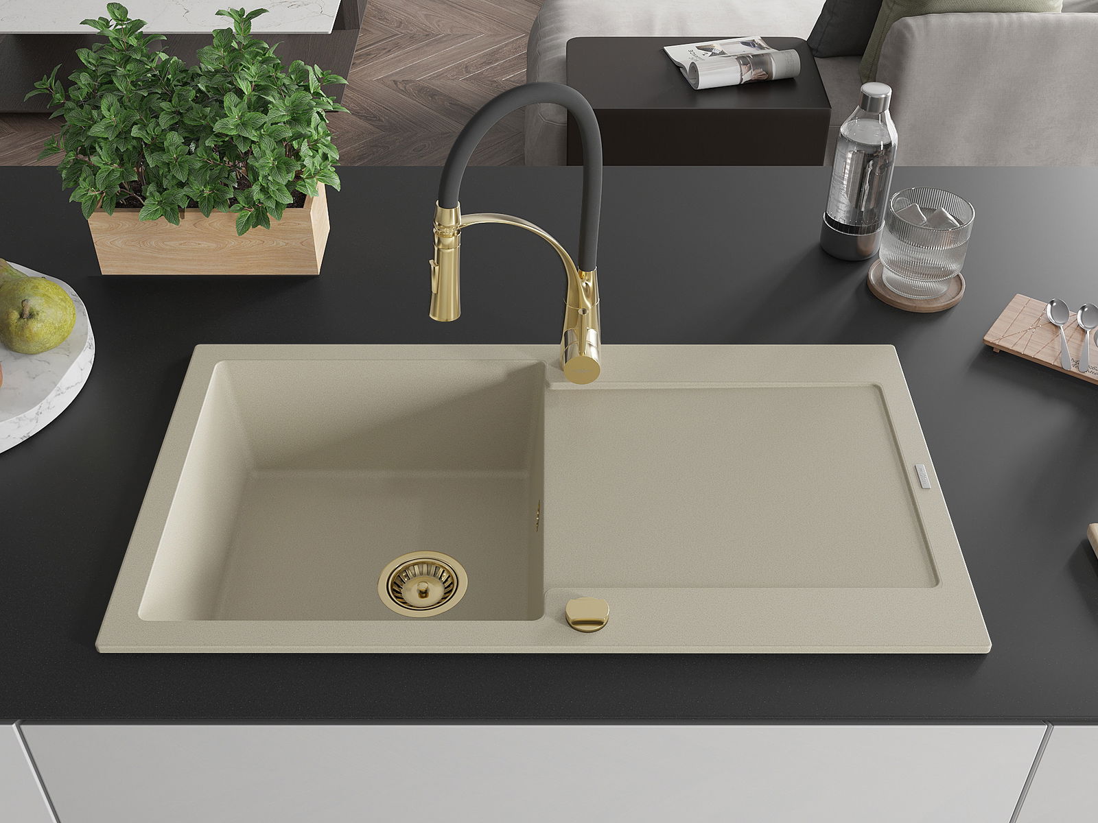 Povrch umývadla je odolný voči škvrnám a sfarbeniu, vďaka čomu sa ľahko čistí a zachováva si svoju farbu po dlhú dobu. Estetický a prakticky dopĺňajúci každú kuchyňu.