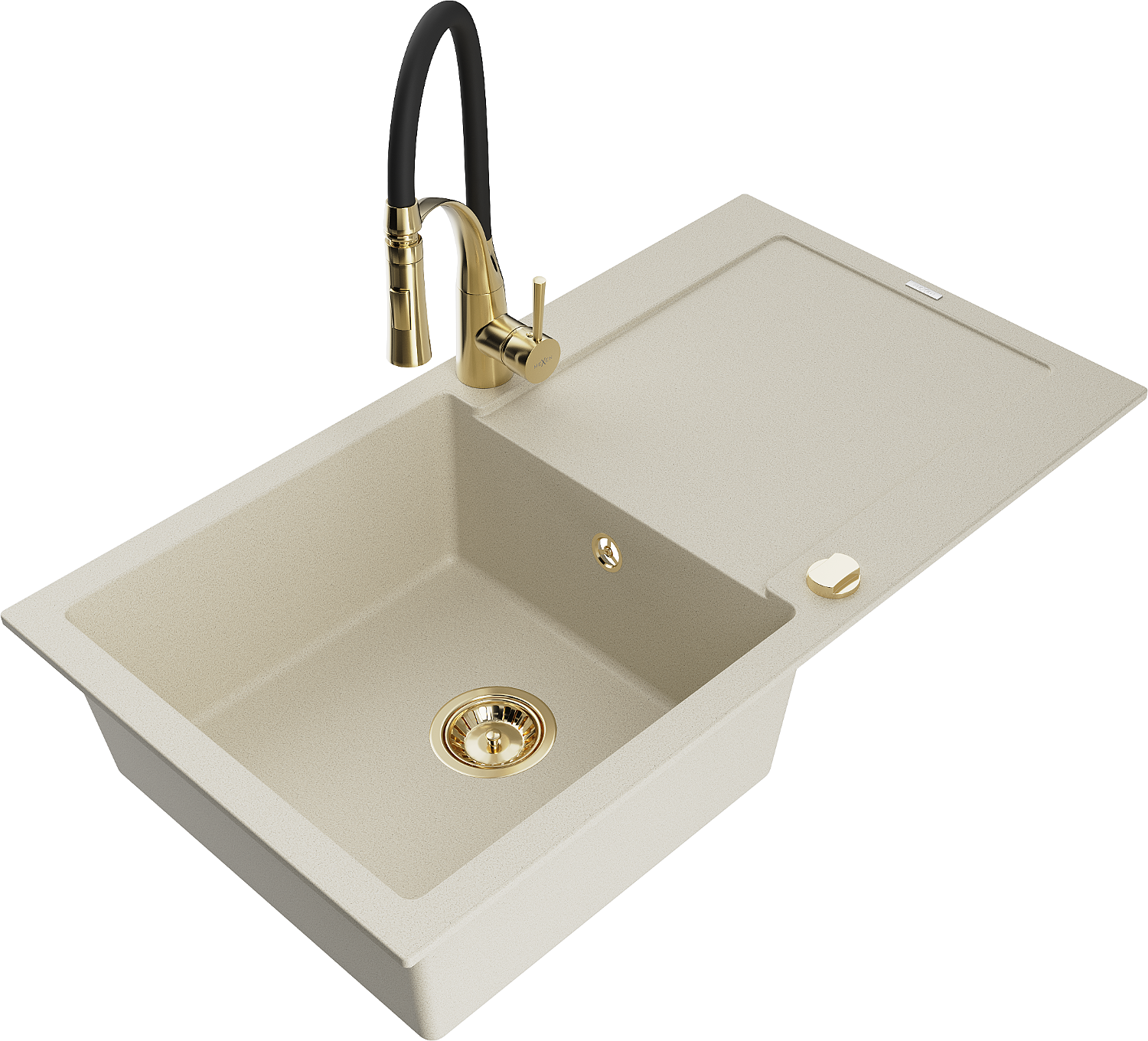 Mexen Leo granitový drez s 1-komorou s odkvapkávačom a kuchynskou batériou Aster, béžový - 6501-69-73450-57-G