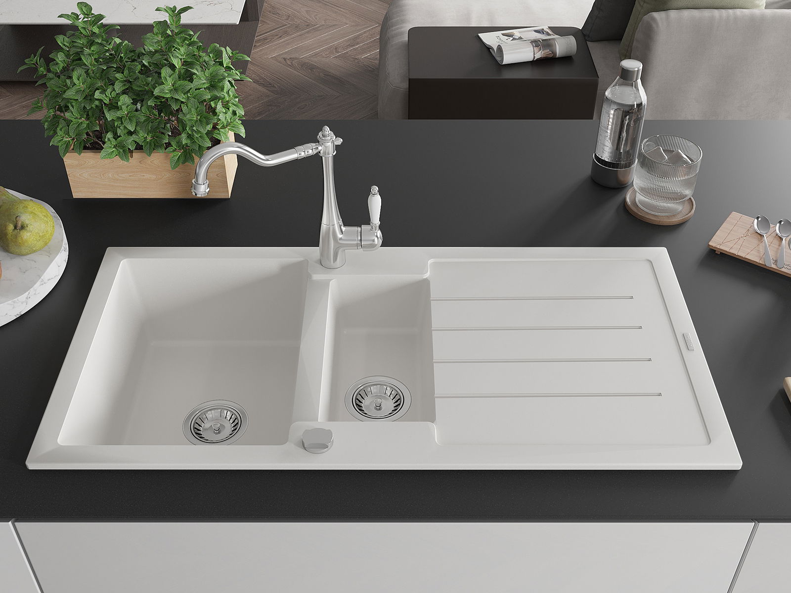 Povrch umývadla je odolný voči škvrnám a sfarbeniu, vďaka čomu sa ľahko čistí a zachováva si svoju farbu po dlhú dobu. Estetický a prakticky dopĺňajúci každú kuchyňu.