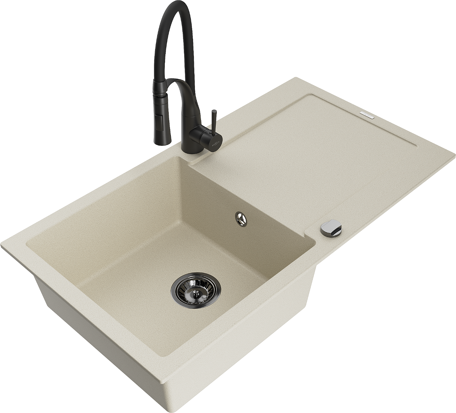 Povrch umývadla je odolný voči škvrnám a sfarbeniu, vďaka čomu sa ľahko čistí a zachováva si svoju farbu po dlhú dobu. Estetický a prakticky dopĺňajúci každú kuchyňu.