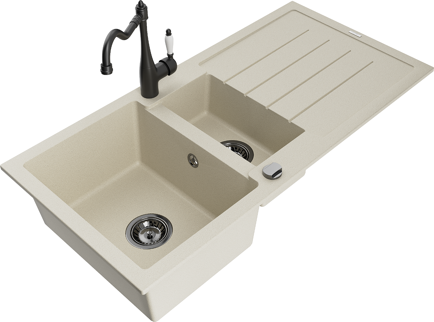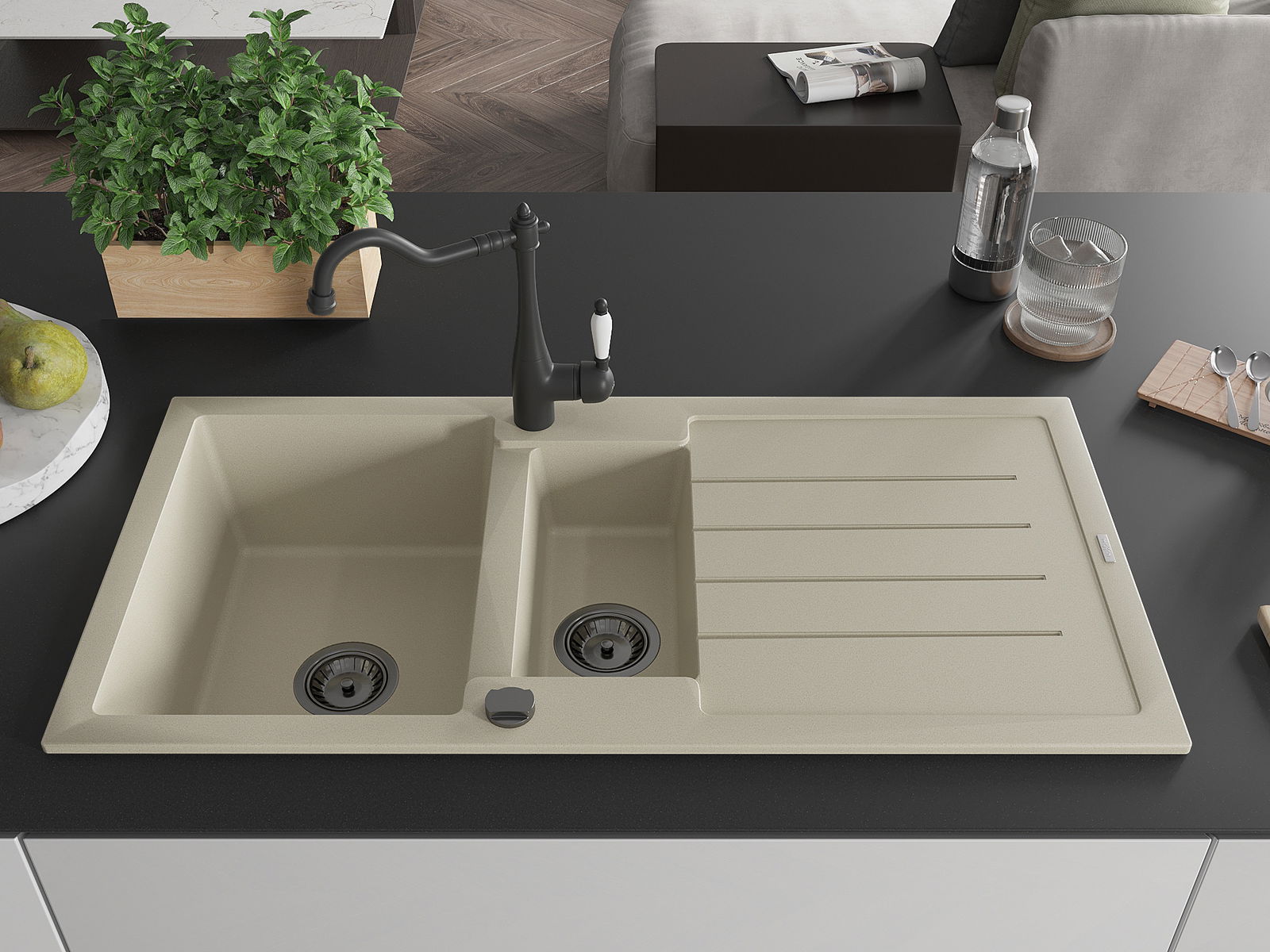 Povrch umývadla je odolný voči škvrnám a sfarbeniu, vďaka čomu sa ľahko čistí a zachováva si svoju farbu po dlhú dobu. Estetický a prakticky dopĺňajúci každú kuchyňu.