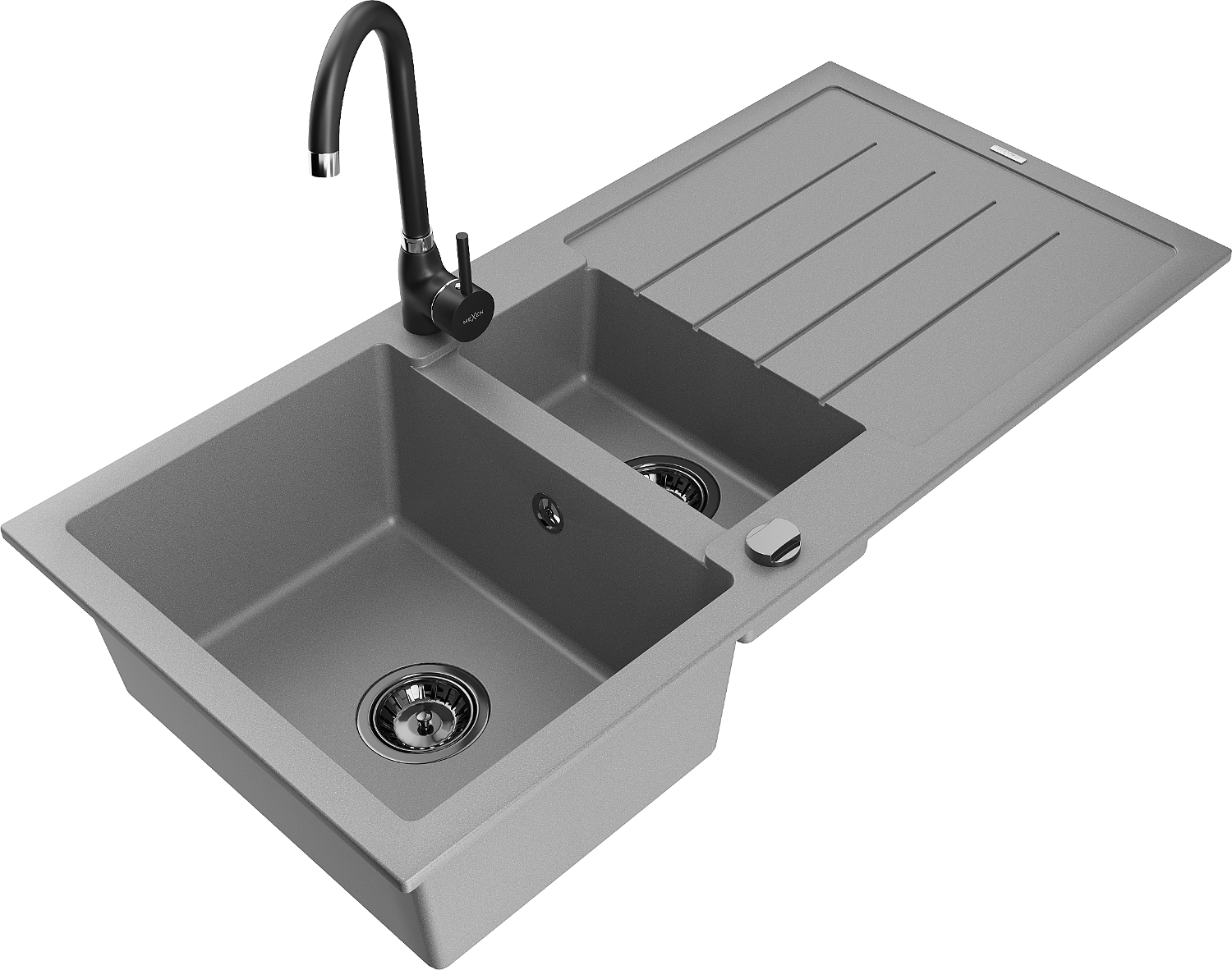 Mexen Andres žulový drez s 1,5 komorou s odkvapkávačom a kuchynskou batériou Telma, sivý - 6515-71-670200-70-B