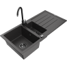 Mexen Andres granitový drezy 1,5-komorový s odkvapkávačom a kuchynskou batériou Telma, čierny/strieborný - 6515-73-670200-70-B