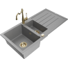 Mexen Andres granitový drez 1,5-komorový s odkvapkávačom a kuchynskou batériou Carla, čierny/strieborný - 6515-73-670700-50