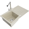 Povrch kuchynského drezu je odolný voči škvrnám a zafarbeniu, vďaka čomu sa ľahko udržiava a zachováva svoju farbu počas dlhého obdobia používania. Estetický a praktický doplnok pre každú kuchyňu.