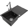 Mexen Cesar granitový drez s 1 komorou s odkvapkávacou plochou a kuchynskou batériou Duero, čierny s bodkami