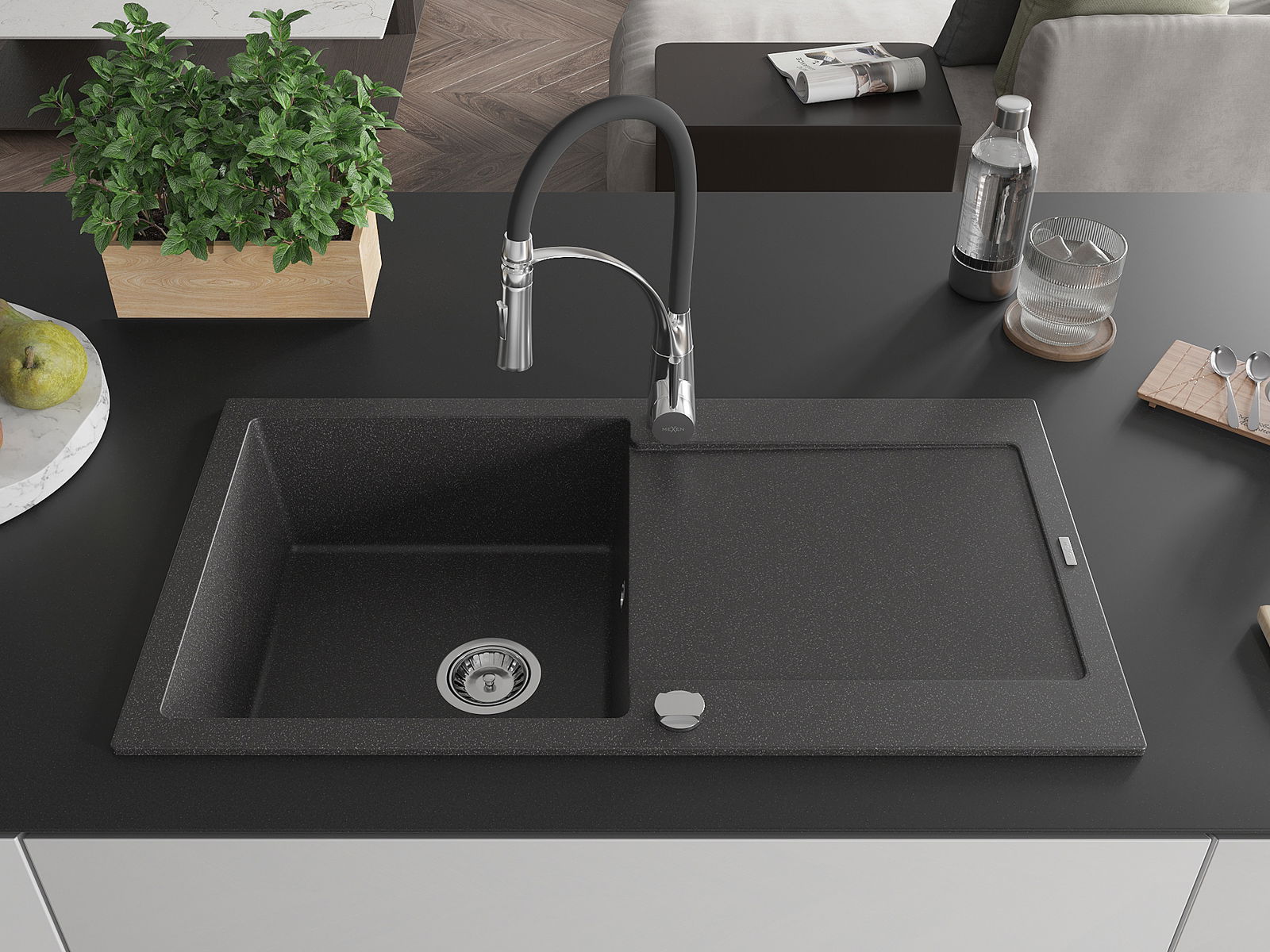 Povrch umývadla je odolný voči škvrnám a sfarbeniu, vďaka čomu sa ľahko čistí a zachováva si svoju farbu po dlhú dobu. Estetický a prakticky dopĺňajúci každú kuchyňu.