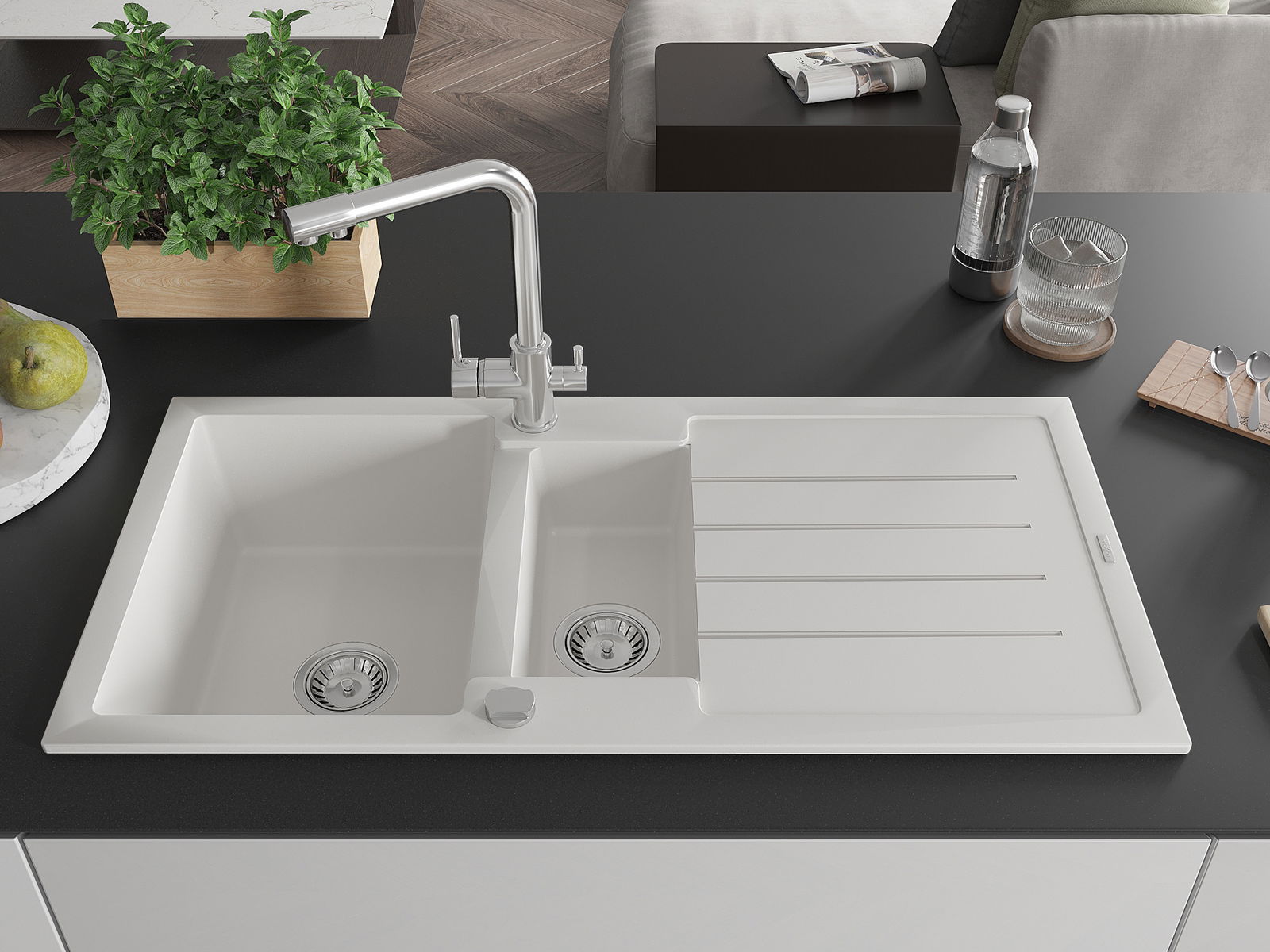 Povrch umývadla je odolný voči škvrnám a sfarbeniu, vďaka čomu sa ľahko čistí a zachováva si svoju farbu po dlhú dobu. Estetický a prakticky dopĺňajúci každú kuchyňu.