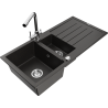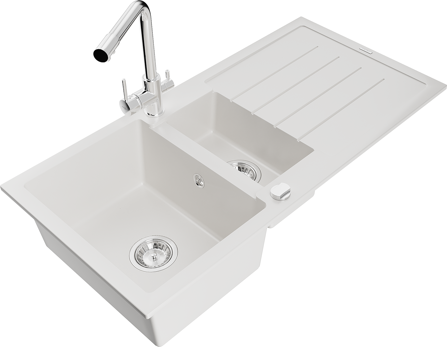 Mexen Andres granitový kuchynský drez 1,5-komorový s odkvapkávačom a kuchynskou batériou Duero, biely - 6515-20-671600-00