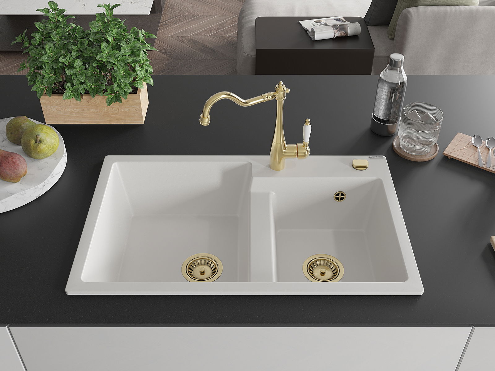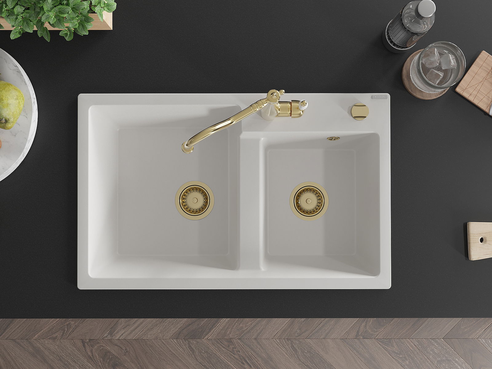 Povrch umývadla je odolný voči škvrnám a sfarbeniu, vďaka čomu sa ľahko čistí a zachováva si svoju farbu po dlhú dobu. Estetický a prakticky dopĺňajúci každú kuchyňu.