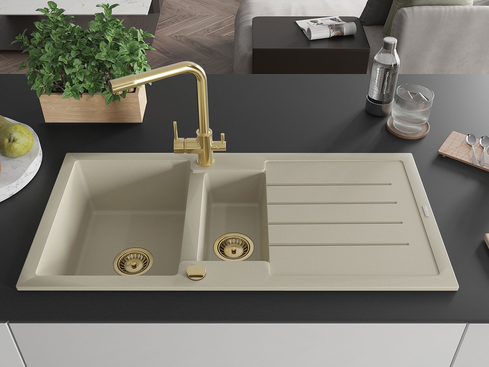 Povrch umývadla je odolný voči škvrnám a sfarbeniu, vďaka čomu sa ľahko čistí a zachováva si svoju farbu po dlhú dobu. Estetický a prakticky dopĺňajúci každú kuchyňu.