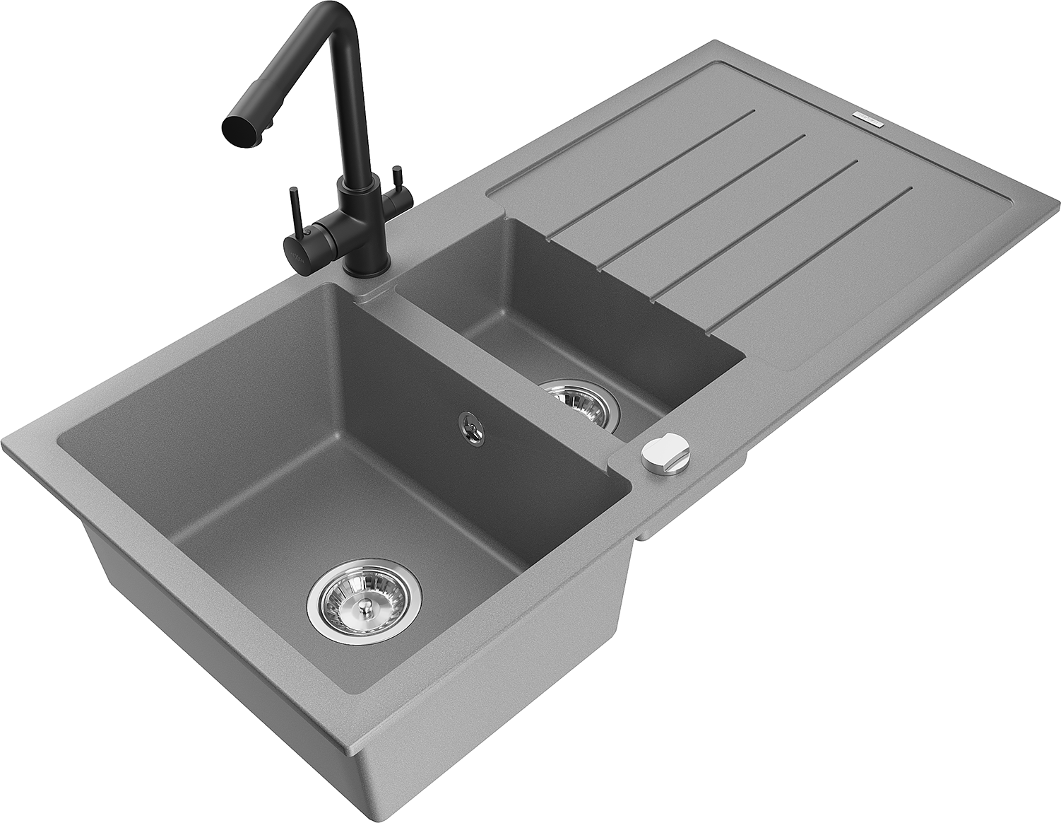 Mexen Andres žulový drez 1,5-komorový s odkvapom a kuchynskou batériou Duero, šedý - 6515-71-671600-70