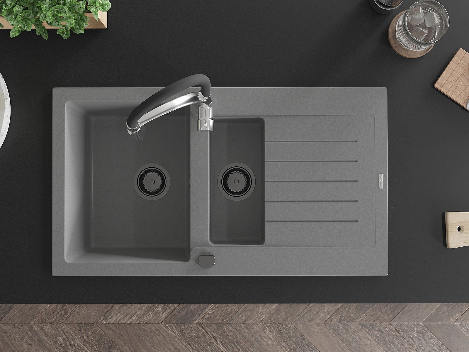 Povrch umývadla je odolný voči škvrnám a sfarbeniu, vďaka čomu sa ľahko čistí a zachováva si svoju farbu po dlhú dobu. Estetický a prakticky dopĺňajúci každú kuchyňu.