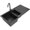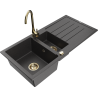 Mexen Andres granitový drez s 1,5 komorami s odkvapkávačom a kuchynskou batériou Telma, čierny/zlatý - 6515-75-670200-50-B