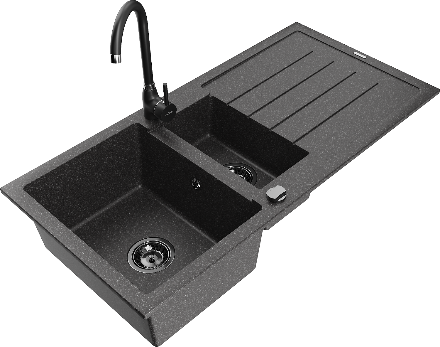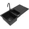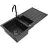 Mexen Andres žulový drez s 1,5 komorou s odkvapkávačom a kuchynskou batériou Telma, čierny s bodkami - 6515-76-670200-70-B
