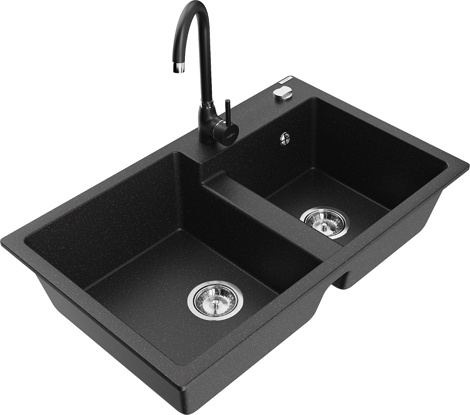 Mexen Tomas žulový drez 2-komorový s kuchynskou batériou Telma, čierny/strieborný metalik - 6516-73-670200-70