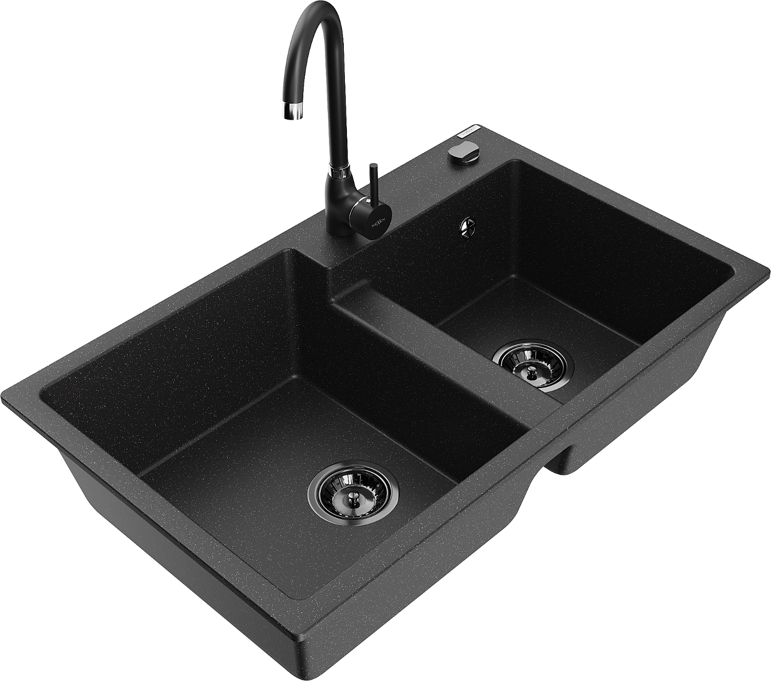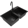 Mexen Tomas žulový drez 2-komorový s kuchynskou batériou Telma, čierno/strieborný metalik - 6516-73-670200-70-B