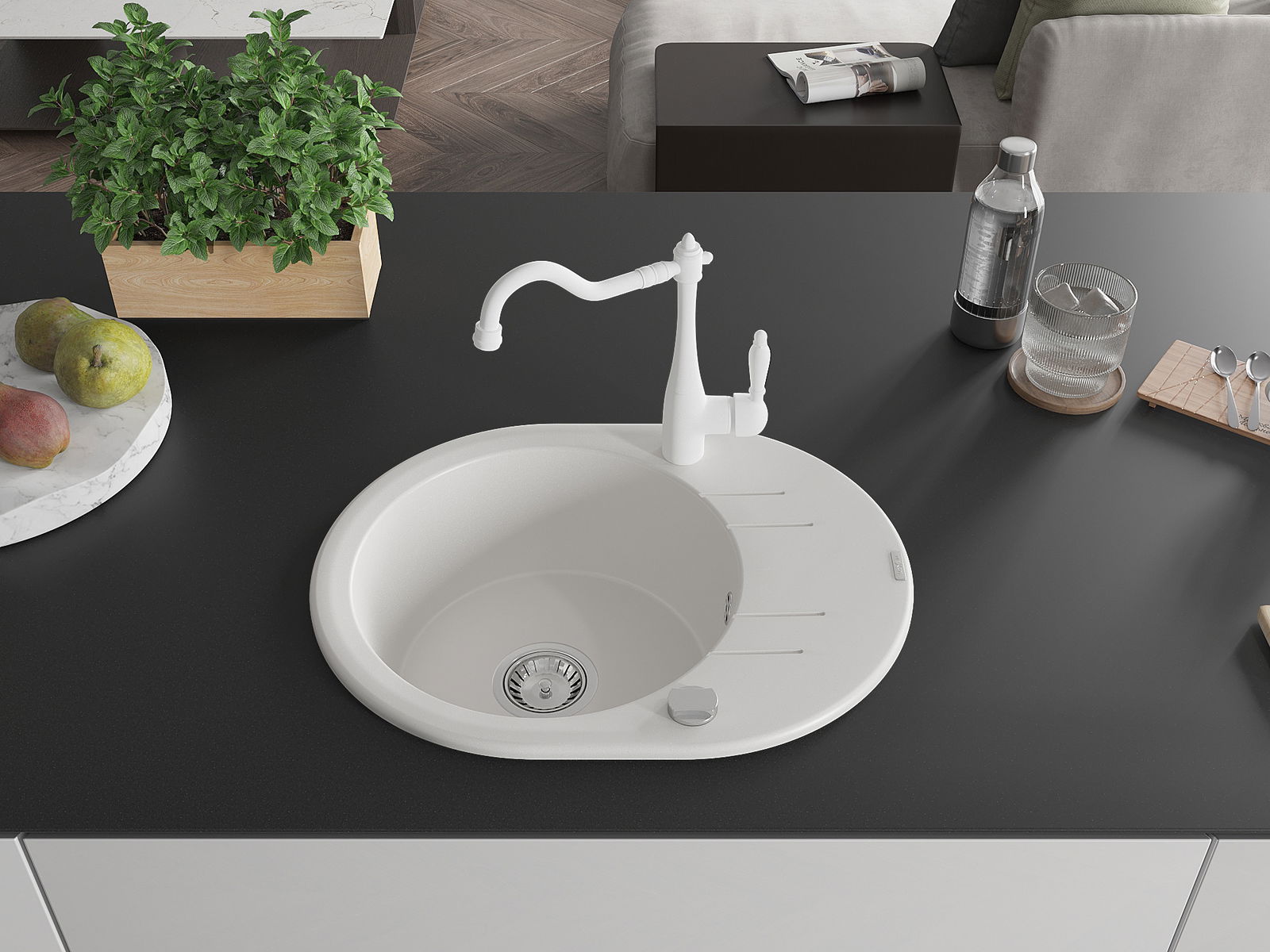 Povrch umývadla je odolný voči škvrnám a sfarbeniu, vďaka čomu sa ľahko čistí a zachováva si svoju farbu po dlhú dobu. Estetický a prakticky dopĺňajúci každú kuchyňu.