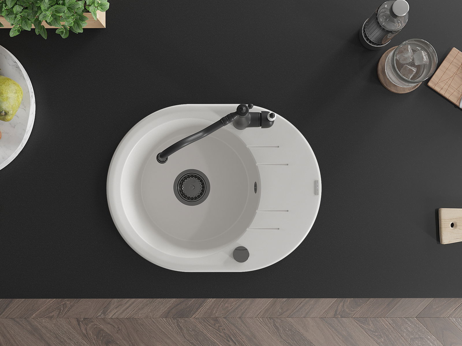 Povrch umývadla je odolný voči škvrnám a sfarbeniu, vďaka čomu sa ľahko čistí a zachováva si svoju farbu po dlhú dobu. Estetický a prakticky dopĺňajúci každú kuchyňu.