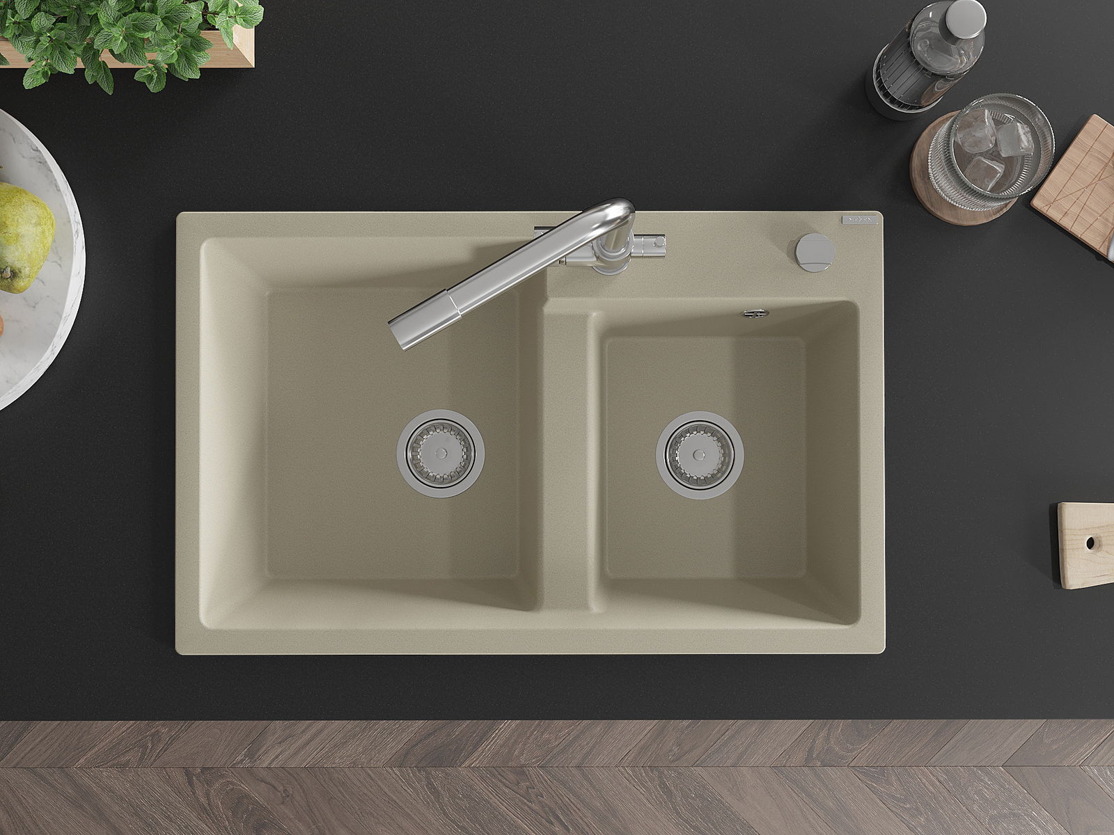 Povrch kuchynského drezu je odolný voči škvrnám a zafarbeniu, vďaka čomu sa ľahko udržiava a zachováva svoju farbu počas dlhého obdobia používania. Estetický a praktický doplnok pre každú kuchyňu.