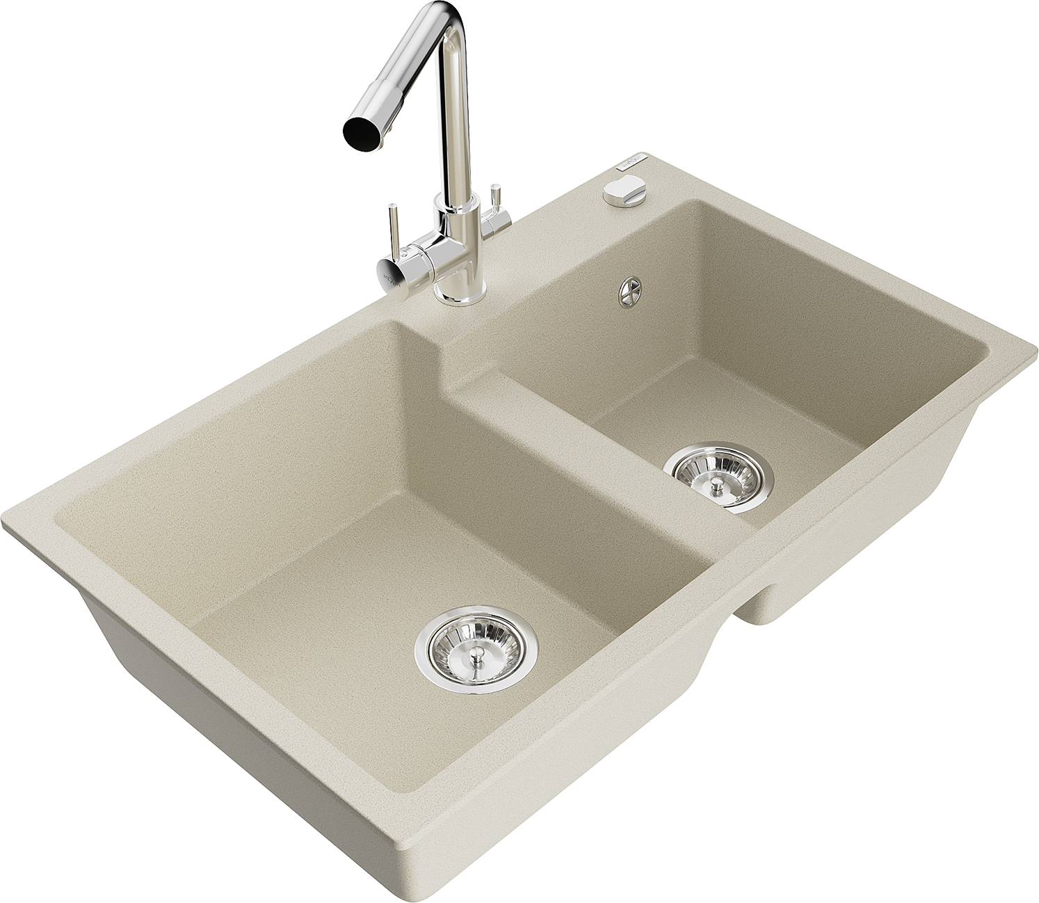 Mexen Tomas žulový drez 2-komorový s kuchynskou batériou Duero, béžový - 6516-69-671600-00