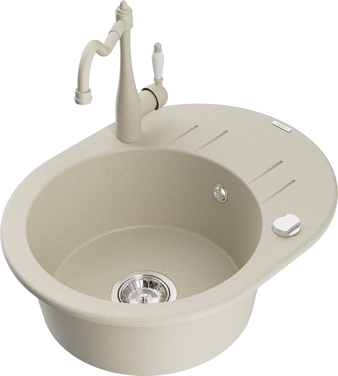 Mexen Kevin granitový drez, jednodrez s odkvapkávačom a kuchynskou batériou Carla, béžový - 6517-69-670700-69