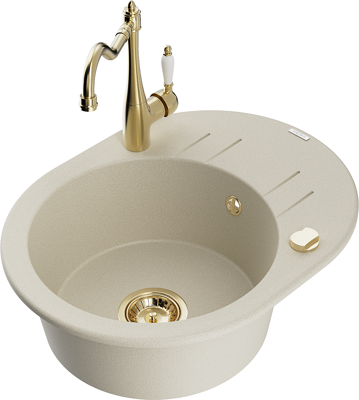 Mexen Kevin granitový drez 1-komorový s odkvapkávačom a kuchynskou batériou Carla, béžový - 6517-69-670700-50