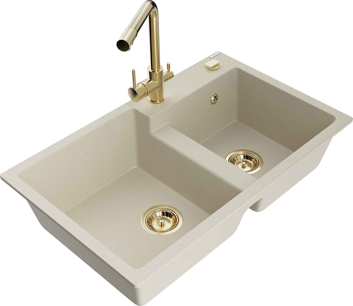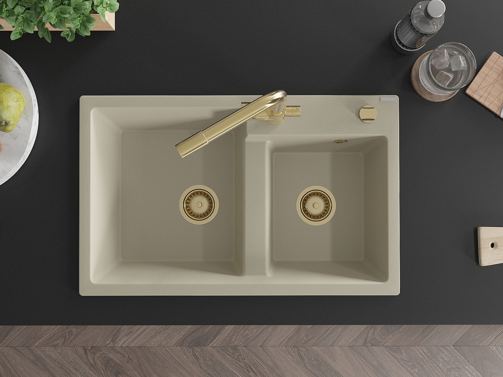 Mexen Tomas žulový dvojkomorový kuchynský drez s batériou Duero, béžový - 6516-69-671600-50