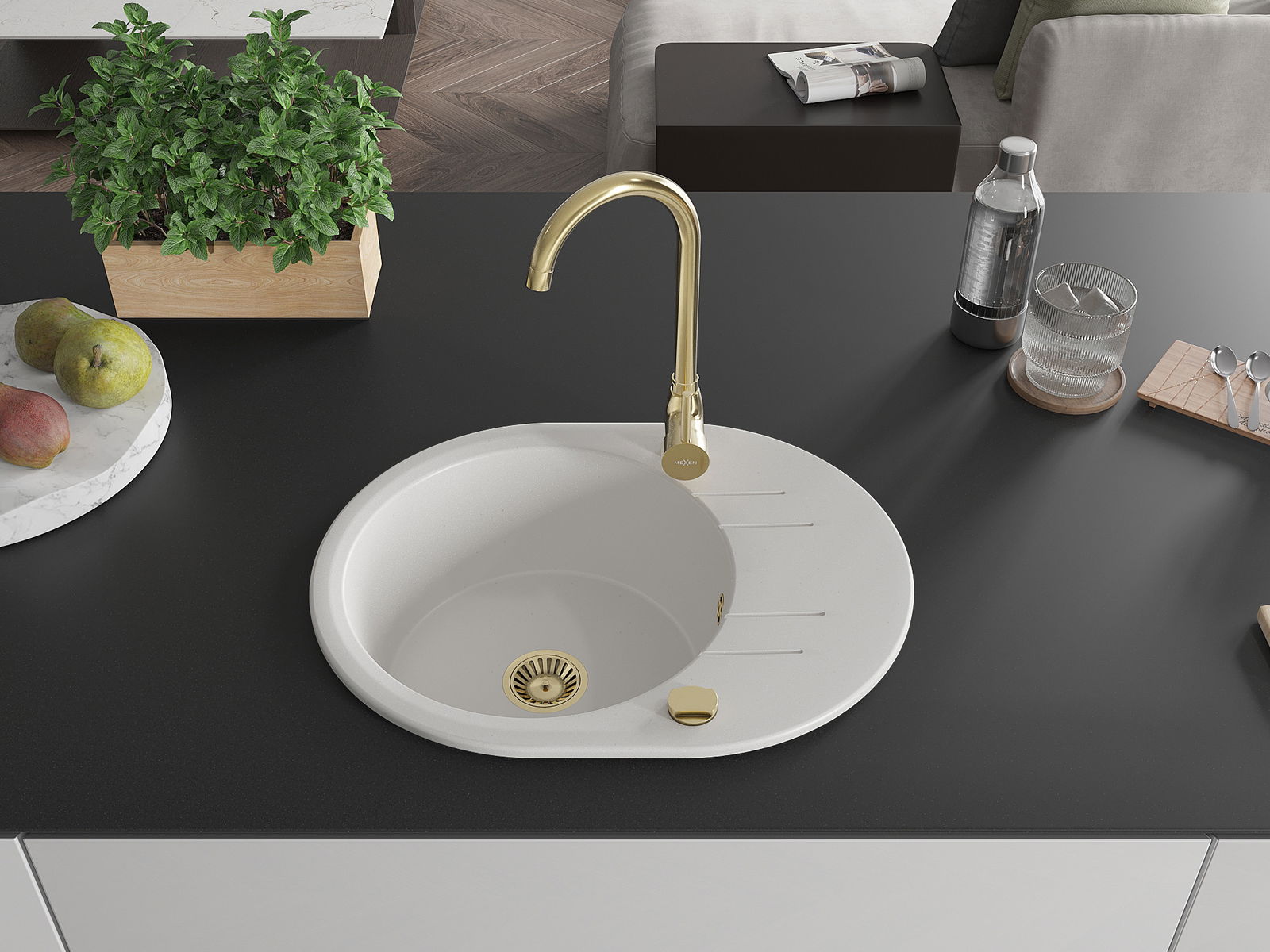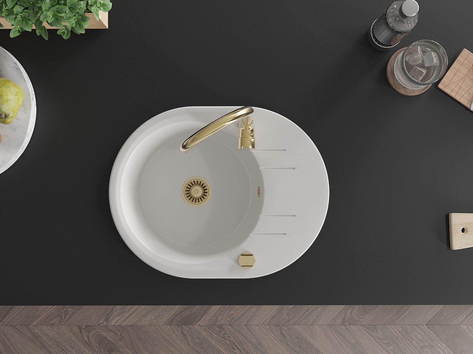 Povrch umývadla je odolný voči škvrnám a sfarbeniu, vďaka čomu sa ľahko čistí a zachováva si svoju farbu po dlhú dobu. Estetický a prakticky dopĺňajúci každú kuchyňu.