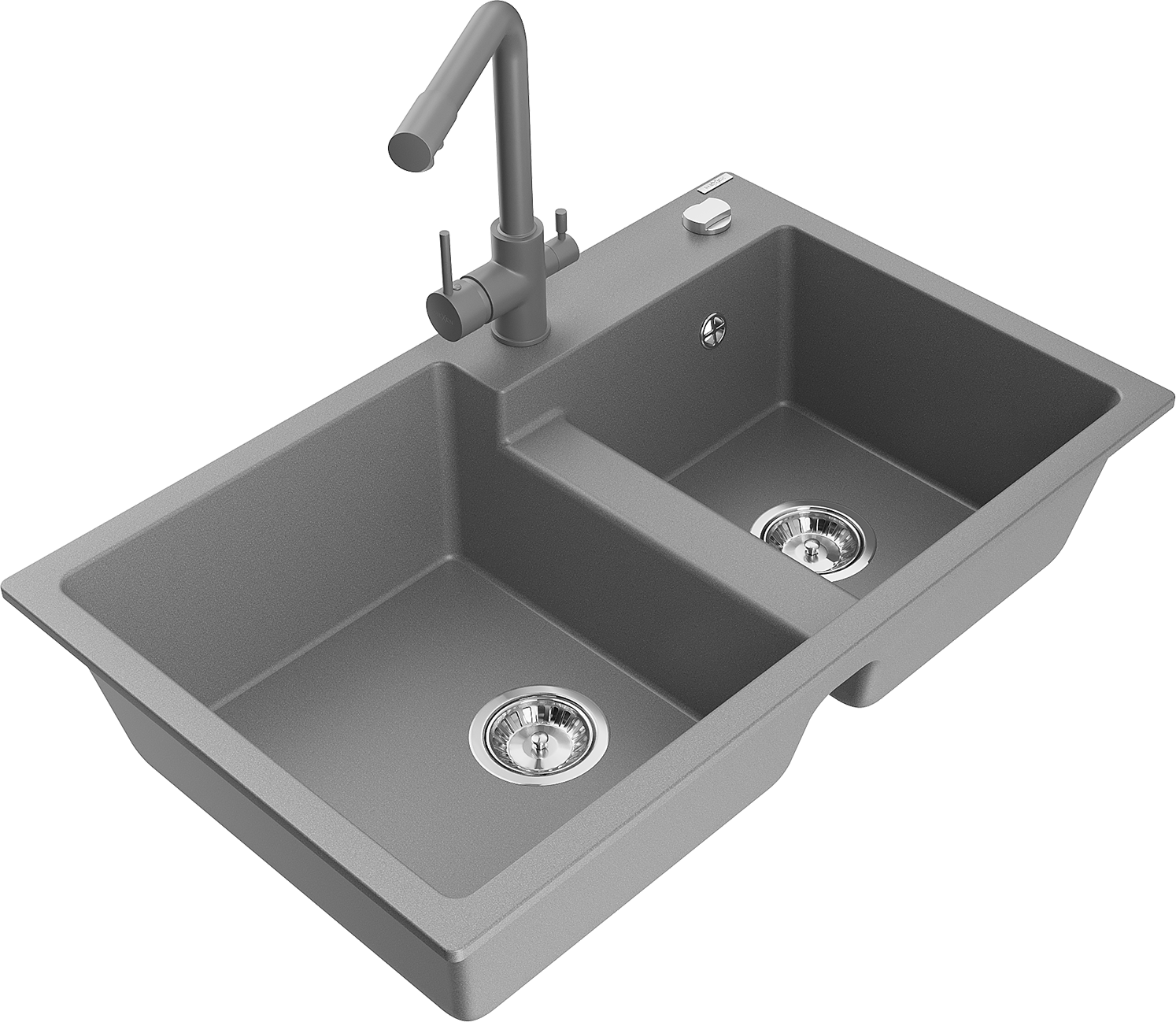 Mexen Tomas granitový drez 2-komorový s kuchynskou batériou Duero, sivý - 6516-71-671600-71