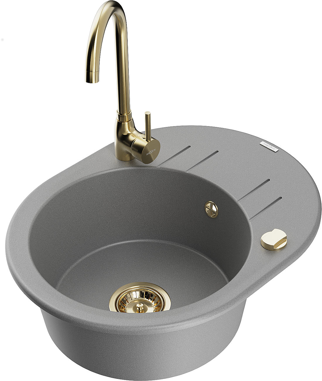 Mexen Kevin žulový kuchynský drez s 1 komorou a odkvapkávačom a kuchynskou batériou Telma, sivý - 6517-71-670200-50