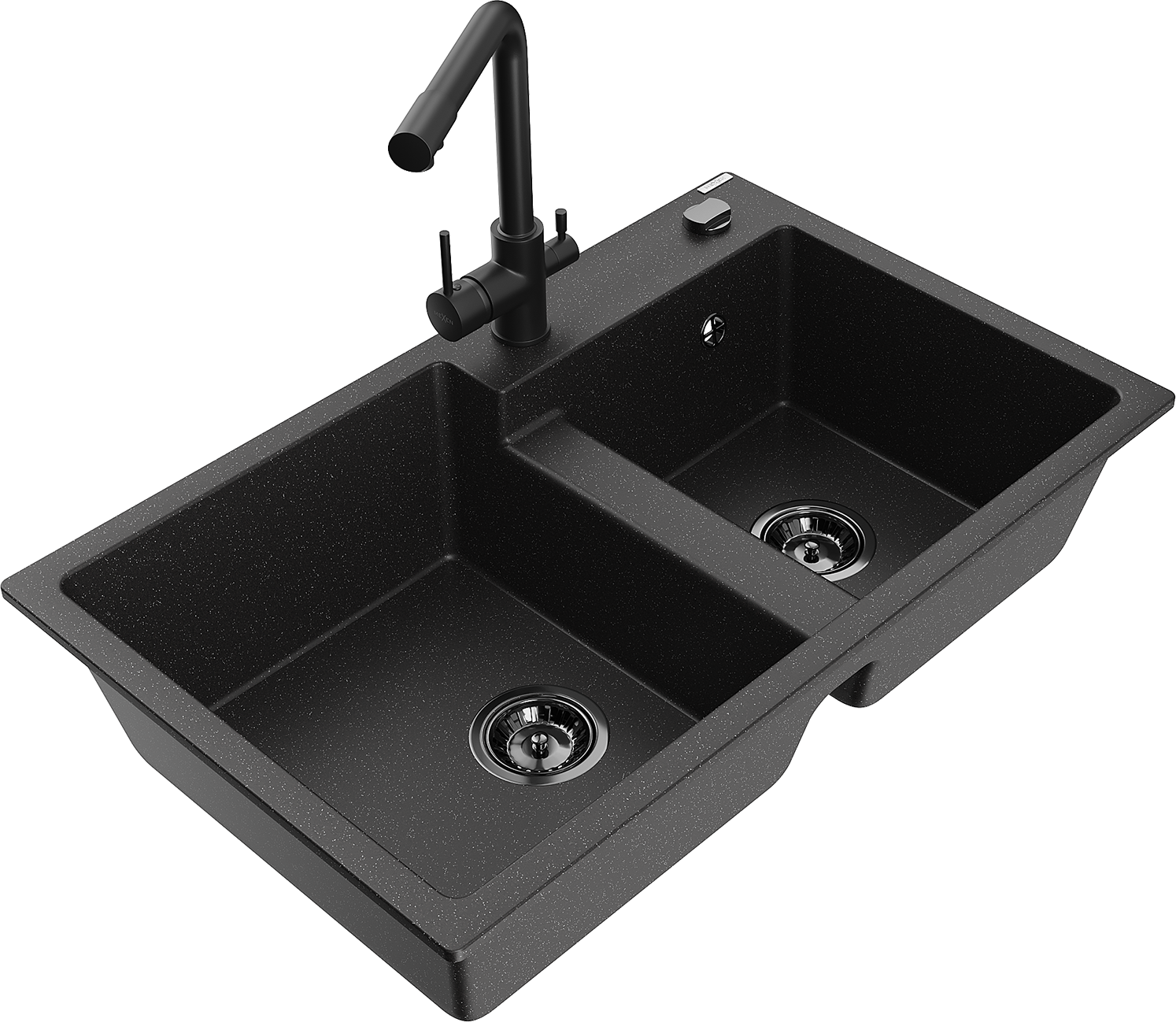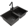 Mexen Tomas granitový drez dvojkomorový s kuchynskou batériou Duero, čierny/strieborný metalik - 6516-73-671600-70-B