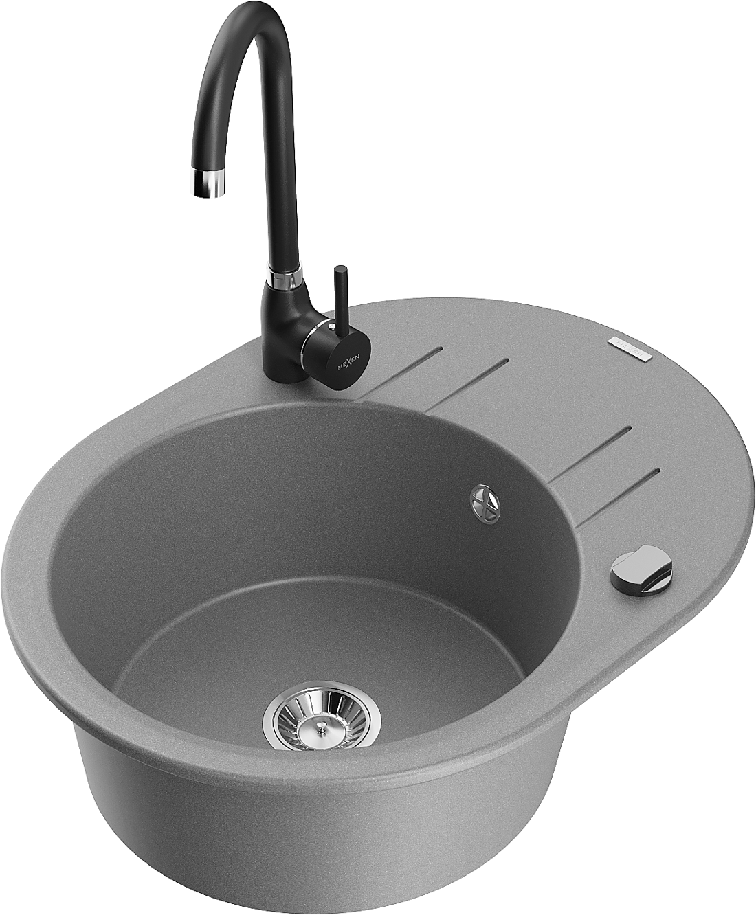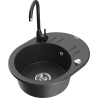Mexen Kevin žulový drez 1-komorový s odkvapkávačom a kuchynskou batériou Telma, sivý - 6517-71-670200-70